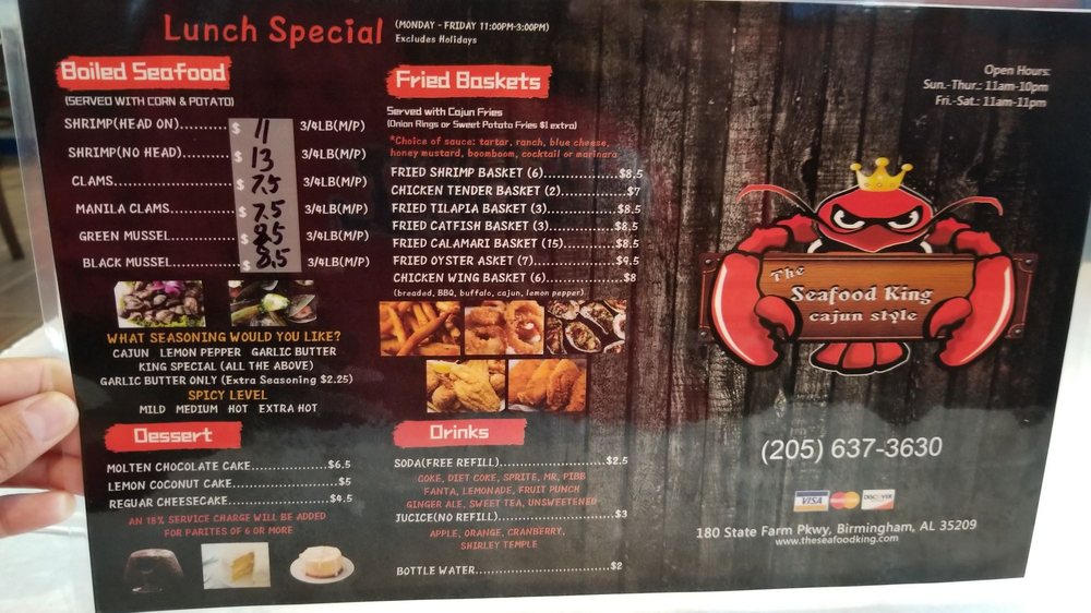 Introducing The Seafood King, a seafood restaurant located at 180 State Farm Pkwy in Homewood, AL. With a wide range of options including fried combos, appetizers like hush puppies and fried calamari, and customizable combos for all seafood lovers. Customer reviews highlight the delicious taste of dishes like shrimp and sausage with garlic butter sauce, spicy shrimp with no head, and seafood boils with flavorful seasonings. The ambiance is clean and inviting, with friendly staff and quick service. The menu also offers options for vegetarians and those looking for a casual dining experience. Overall, The Seafood King impresses with its variety of seafood offerings and satisfying flavors, making it a must-visit for seafood enthusiasts.